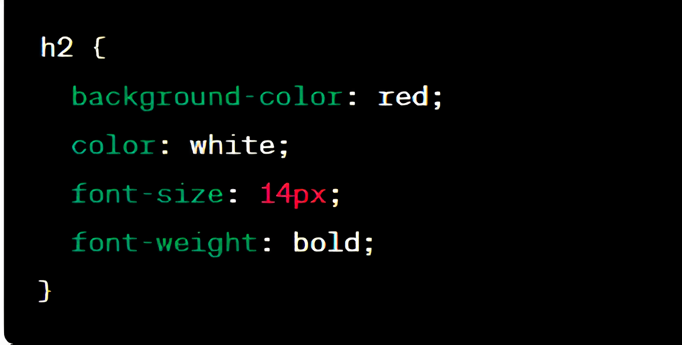 Let’s consider an example. Say you wanted to make every H2 header on your site have a red background, white font, bolded text and size 14-point font. You would insert a code that looks like this into your style sheet: